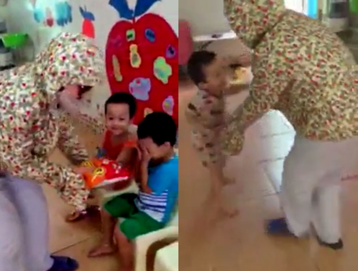 Cô giáo giả làm người lạ, mặc chiếc áo chống nắng, đeo khẩu trang bước vào lớp học sau đó dụ các bé đi chơi bằng bim bim, kẹo và nhiều đồ chơi. Khi 1 học sinh trong lớp b...